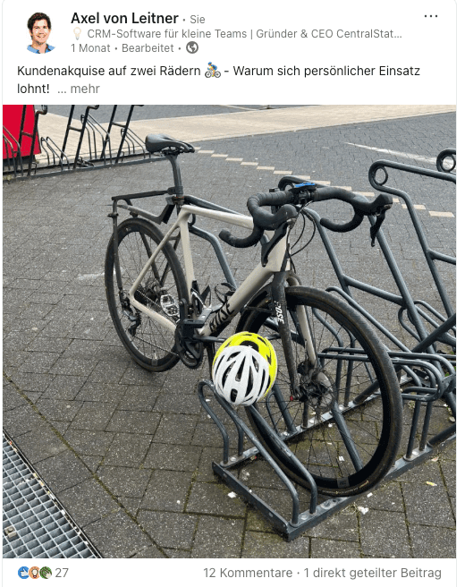Christian: Anfang 2025 haben wir das Profil gewechselt und unseren Chef mit einbezogen. Außerdem haben wir den Fokus der Posts etwas verschoben. Der Link zur Website kommt immer noch, aber in den Kommentaren.